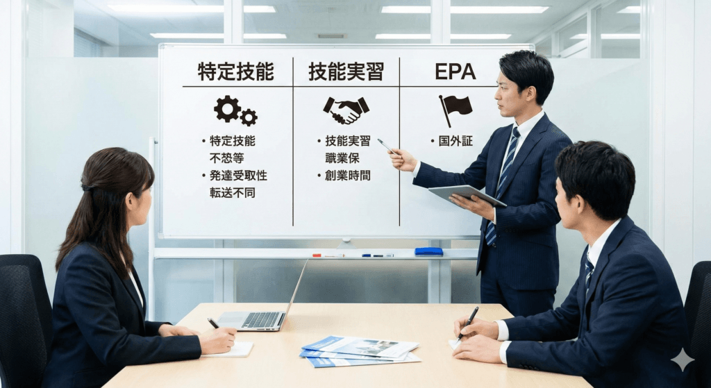 【保存版】特定技能・技能実習・EPAの違いを比較!自施設に最適な制度の選び方